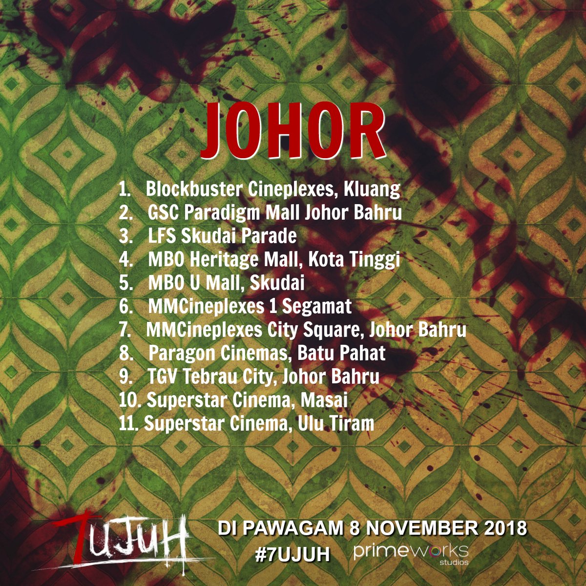Please try again later. Mbo - kluang mall kluang cinema info date. Pacific-batu pahat bp mall batu pahat mall 1-888 hakab juhabg 83000 batu pahat johor pagoh kopitiam gerai 8 dtr pagoh selatan lebuhraya selatan pagoh 84600 muar johor pelangi manis sdn bhd fc08 tesco desa tebrau 1 persiaran desa tebrau 81100 johor bahru johor popular successor f.